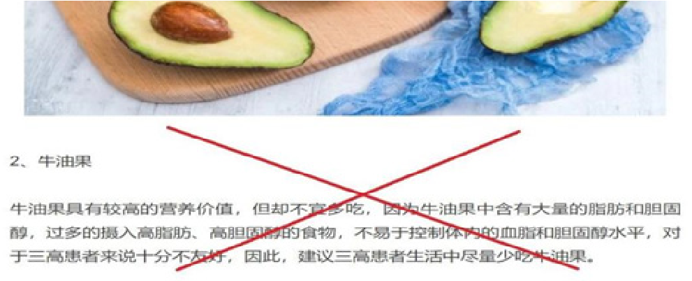 當(dāng)然,牛油果畢竟是一種高脂肪、高熱量的食物,本身的風(fēng)味口感也很一般,無法像其他水果那樣直接大量食用。通常,它是作為食材搭配的一部分用于各種沙拉或者點(diǎn)心中,即便是“很喜歡”的人,食用量也不會(huì)很大。因?yàn)樗臓I養(yǎng)組成,就說它能夠“降血脂”“抗氧化”,只是一種美好的想法;同樣,因?yàn)樗?ldquo;高脂肪”就說它會(huì)“引起血液粘稠,血管內(nèi)脂肪堆積,形成血栓,誘發(fā)腦梗”,也是信口開河的無稽之談。