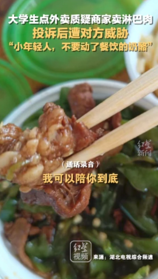 當(dāng)記者針對(duì)此事進(jìn)行采訪時(shí),夏先生表示,自己收到的外賣青椒炒肉里面的肉(懷疑)用的是淋巴肉,聯(lián)系商家退款竟遭到店家威脅,他錄了音。并將錄音公布了,隨后當(dāng)?shù)厥袌?chǎng)監(jiān)管部門介入調(diào)查。