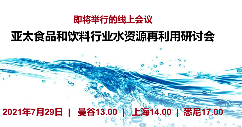 即將舉行的線上會(huì)議——亞太食品和飲料行業(yè)水資源再利用研討會(huì),2021年7月29日,曼谷13 00,上海14 00,悉尼17 00