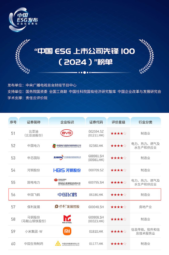 “中國 ESG 上市公司先鋒 100”發(fā)布,中國飛鶴再度入
